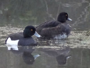 Die bereits im Januar für die Pörmitzer Flur gemeldeten großen Höckerschwan-Ansammlungen hatten auch in diesem Monat Bestand. Maximal zählte V. Vopel am 16.2. 72 Ind. 100 Nilgänse hielten sich am 3.2. und 4.2. auf den Wetterawegsgelängen bei Saalburg auf (R. Walther). Das bereits mit Monatsbeginn beobachtete paarweise Auftreten der Art meldeten K. Däumler; I. Hermann; K. u. W. Hillebrand; S. Kästner; M. Kohl; K. Spindler; R. Walther und I. Schmidt. Letztere sah am 8.2. erneut 1,1 Ind. auf dem Weißstorchhorst in Gefell. Auf den Wetterawegsgelängen bei Saalburg konnte R. Walther am 3.2. und 4.2. 1 Brandgans beobachten. Eine männliche Schnatterente sah S. Kästner am 16.2. auf der Bleilochtalsperre. I. Hermann konnte am 17.2. 0,1 Krickente in Wurzbach fotografieren. Das Ausgleichbecken Burgkhammer war am 4.2. mit maximal 406 (256,150) Stockenten besetzt (K. u. M. Ostermann). Auf der Bleilochtalsperre zählte S. Kästner am 16.2. 410 Stockenten. I. Hermann stellte am 10.2. 110 Ind. auf den Eliasbrunner Klärteichen fest. Auf mind. 300 Ind. schätzte M. Schulze am 20.2. eine Ansammlung auf der Saale in Ziegenrück. 1,0 Mandarinente fotografierte K. Spindler am 10.2. auf dem Mühlteich in Friesau. Reiherenten konnten K. u. M.Ostermann sowie S. Kästner an allen Beobachtungstagen auf dem Ausgleichbecken Grochwitz notieren. Max. waren es 7,6 Ind. am 18.2. Die Bleilochtalsperre bei Saalburg war am 25.2. mit 3 Reiherenten besetzt (A. Franz, K. Ostermann). 2,2 Reiherenten zählte H. Böhm vom 23.2. bis 25.2. an der Selbitzmündung in Blankenstein. Für den Speicher Oettersdorf brachte V. Vopel am 16.2. den Nachweis von 3 Tafelenten. 1,0 Schellente sah R. Walther am 6.2. an der Kösperaleite der Bleilochtalsperre. K. u. M. Ostermann notierten am 4.2. 6,6 Schellenten auf dem Ausgleichgbecken Grochwitz und nochmals 3,3 Ind. am 11.2. ebenda. Am 16.2. beobachteten sowohl S. Kästner als auch M. Kohl jeweils 6,5 Schellenten auf diesem Gewässer. Zwei Tage später sahen wiederum K. u. M. Ostermann hier nochmals 2,3 Ind. Auf und südlich der Klosterplatte zählte R. Walther am 3.2. 14 Haubentaucher. 13 Ind. waren es am 7.2., 16 Ind. am 9.2. 1 Zwergtaucher sah I. Hermann am 7.2. auf der Saale am Nähermühlenwehr in Ziegenrück. 2 Ind. waren am 16.2. auf dem Ausgleichbecken Grochwitz zu sehen (S. Kästner), wo K. u. M. Ostermann am 18.2. noch 1 Ind. feststellen konnten. P. Neupert zählte im Saaleabschnitt Walsburg-Ziegenrück am 22.2. 4 Zwergtaucher. 1,1 Gänsesäger waren am 3.2. am nördlichen Ufer der Klosterplatte zu beobachten. Weitere 2,0 Ind. schwammen vor Saalburg (R. Walther). K. u. M. Ostermann notierten am 4.2. auf dem Ausgleichbecken Burgkhammer 4,2 Gänsesäger. Weitere 4,6 Ind. stellten dieselben Beobachter am 11.2. auf dem Ausgleichbecken Grochwitz bei Burgk fest. 4,2 Gänsesäger hielten sich am 16.2. auf der Bleilochtalsperre auf (S. Kästner). Den für die Ausgleichbecken mit 13 (7,6) Ind. größten Trupp sahen erneut K. u. M. Ostermann am 18.2. vor Burgkhammer sowie weitere 3,2 Gänsesäger auf dem Ausgleichbecken Grochwitz bei Burgk. Hier konnten am 25.2. nochmals 1,1 Ind. nachgewiesen werden. Die mit 25 (12,13) Ind. für den Saaleabschnitt größte Anzahl Gänsesäger beobachteten A. Franz und K. Ostermann am 25.2. bei Saalburg. Bis zu 6,4 Gänsesäger zählte H. Böhm an allen Beobachtungstagen im Mündungsbereich der Selbitz in Blankenstein. Von der Talsperre Lössau brachte P. Neupert am 27.2. mit dem Nachweis von 13 (5,8) Ind. das monatliche Maximum. Für den Kalkteich bei Schönbrunn nennen K. u. R. Friedrich die Beobachtung von einem Männchen am 28.2.