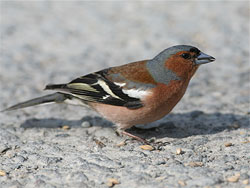 Buchfink (Fringilla coelebs) (Photo: S. Kästner)Buchfinken (Fringilla coelebs) verlassen im Oktober unser Gebiet und kehren im März zurück. Einzelne Finken - meist Männchen - sind auch im Winter zu beobachten, halten sich dann aber fast(?) ausschließlich an Fütterungen in Siedlungen auf. Ein schneereicher und kalter Winter, wie er 2009/2010 die Region beherrschte, wirkt sich auf die Rückkehr der Buchfinken aus. Das jedenfalls lassen die Beobachtungen aus dem vergangenen Frühjahr vermuten. Selbst im April waren nur vergleichsweise nur auffallend wenige singende Männchen zu hören, was von den Beobachtern gezielt dokumentiert wurde. Oder lag es an anderen Faktoren, vielleicht einem kalten Frühjahr? Oder gab es einen allgemeinen Bestandsrückgang?
