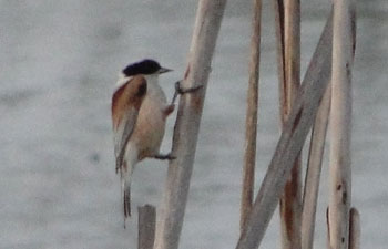 (Photo: A. Berg)Die nunmehr warme Witterung hat dem Frühjahrszug den erwarteten Schwung verliehen und Beobachtungen weiterer Arten ermöglicht. A. Berg notierte am 13.4. zwei Beutelmeisen (Remiz pendulinus) am Pöritzscher Schafteich im Bild festhalten (Photo). H. Schneider meldete am 3.4. ca. 50 Seidenschwänze (Bombycilla garrulus) an der Fütterung in seinem Ebersdorfer Garten. Wasseramseln (Cinclus cinclus) wurden von A. Schmidt in Ziegenrück noch mit Nistmaterial gesehen, was auf einen der Witterung geschuldeten späteren Brutbeginn schließen läßt.