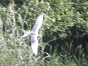 Der erste Nachweis der Flußseeschwalbe im Beobachtungsgebiet gelang R. Müller am 21.6. am Speicher Pfotenbach zwischen Schönbrunn und Friesau. Der Vogel jagte nach kleinen Fischen und konnte vom Beobachter mit Belegaufnahmen dokumentiert werden (Photo).