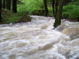 Das anhaltend nasse und kalte Wetter dürfte bei zahlreichen Arten Schwierigkeiten im Brutgeschäfgt verursachen. Vergleichweise wenige Amseln (Turdus merula) waren bis Ende des Monats mit Futter zu sehen. Die Gesänge von Singdrossel (Turdus philomelos) und Misteldrossel (Turdus viscivorus) waren seltener zu hören als im Vorjahr. Dasselbe gilt überraschenderweise auch für Hohltaube (Columba oenas) und Ringeltaube (Columba palumbus). Beim Zilpzalp (Phylloscopus collybita) dürften wie bei anderen Boden-/Freibrütern etliche Nestlinge durch Verklammung erfroren sein. Ohnehin war diese Art bis heute seltener zu hören als 2011. Bei der Wasseramsel (Cinclus cinclus) war maximal ein Viertel der vorjährigen Brutplätze besetzt (P. Wieczorek). Hochwasser dürfte zudem zum Ausfall weiterer Bruten geführt haben (Photo). Besonders schwierig gestaltet sich die Lage für Rauchschwalbe (Hirundo rustica), Mehlschwalbe (Delichon urbicum) und Mauersegler (Apus apus). Die Mehlschwalben haben vielerorts ihre Bruten aufgegeben. Am 26.5. sammelten sich annähernd 200 Ind. dicht gedrängt auf einer Hochspannungsleitung über dem Ausgleichsbecken Burgkhammer. Die Lage wurde aufgrund fehlender Nahrung allmählich auch für die Altvögel prekär. R. Reichel fand bei Burgk etliche Mehlschwalben, die Opfer der Witterung wurden (Photo). Vermutlich sind auch viele alte und nestjunge Mauersegler in ihren Nisthöhlen verhungert.