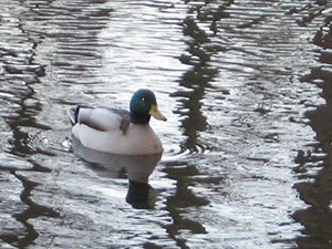 Hybrid Stock- x Hausente (Photo: P. Hirth)Trotz des noch milden Wetters sind bereits einige Durchzügler aus dem Norden im Beobachtungsgebiet entdeckt worden. R. Walther meldete am 1.11. 0,1 und am 6.11. 1,1 Mittelsäger (Mergus serrator) in der Remptendorfer Bucht der Bleilochtalsperre. Die Zahl von 54 Reiherenten (Aythya fuligula) am 15.11. auf dem Ausgleichsbecken Burgkhammer (R. Walther) ist trotz der zunehmenden Etablierung der Art als Brutvogel im Beobachtungsgebiet eine beachtenswerte Größe. Auf dem Ausgleichsbecken Burgkhammer hielt sich seit mindestens Mitte Oktober längere Zeite eine männliche Mandarinente (Aix galericulata) auf (R. Walther). "Trompetergimpel", die mit ihrem quäkenden Ruf auffallenden Gimpel (Pyrrhula pyrrhula) aus Nordosteuropa, wurden seit Anfang November mehrfach notiert (R. Walther). Auch bei 1,1 Kornweihen (Circus cyaneus) am 15.11. nahe Röppisch (R. Walther) handelte es sich um nordische Gäste. Der in diesem Jahr vergleichsweise starke Durchzug der Saatkrähe (Corvus frugilegus) hielt bis in die erste Novemberhälfte an. Aufgrund der eher milden Winter der vergangenen Jahre scheint sich der Bestand des Eisvogels (Alcedo atthis) wieder erhöht zu haben. R. Walther zählte am 7.11. und 9.11. 4 Ind. und am 15.11. 3 Ind. allein am Ausgleichsbecken Grochwitz. Am Ruhteich bei Remptendorf waren am 9.11. ebenfalls 2 Ind. zu sehen. Bemerkenswert waren bis zu 17 Zwergtaucher (Tachybaptus ruficollis) in der ersten Novemberdekade auf dem Ausgleichsbecken Grochwitz (R. Walther). Bei Weisbach waren am 15.11. 26 Mäusebussarde (Buteo buteo) zu sehen (R. Walther). Im Ebersdorfer Park kann mit etwas Glück der Mittelspecht (Dendrocopos medius) beobachtet werden. So sah P. Hirth am 13.11. dort ein Individuum. Lohenswert ist es, nach späten Misteldrosseln (Turdus viscivorus) und Singdrosseln (Turdus philomelos) Ausschau zu halten. Über mehrere Tage stellte R. Walther am Remptendorfer Kuhberg die anwesenheit von bis zu 30 Fichtenkreuzschnäbeln (Loxia curvirostra) fest. Auf dem Ebersdorfer Küchenteich und Pfotenteich waren dieser Tage zwei männliche Hybriden Stock- x Hausente (Anas platyrhynchos x platyrhynchos f. domesticus) zu sehen (P. Hirth). Während ein Vogel dem braunen Typus mit weißer Brust angehörte, fehlte beim anderen Männchen die typische kastanienbraune Brust und war der Körper insgesamt weiß eingefärbt (Bild).
