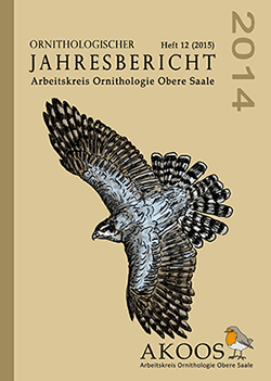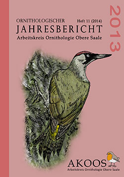 Ornithologischer Jahresbericht 2013Leider deutlich später als geplant ist jetzt der Ornithologische Jahresbericht des AKOOS für das Jahr 2013 erschienen. Auf 196 Seiten werden in der durchgehend farbig bebilderten Broschüre die Beobachtungen von mehr als 170 Arten ausgewertet. Es wurden über 57.400 Beobachtungen, Nestkarten und Beringungsdatensätze in die Datenbank des Arbeitskreises aufgenommen. Im Vergleich zum Vorjahr stieg die Zahl der gewonnenen Daten nochmals deutlich an (2012: ca. 51.200). Darunter befinden sich bemerkenswerte Funde wie der Erstnachweis von Kappensäger (Lodophytes cucullatus), Flußseeschwalbe (Sterna hirundo) und Sumpfohreule (Asio flammeus) sowie der zweite Nachweis der Ohrenlerche (Eremophila alpestris) im Beobachtungsgebiet. Die Zahl der Beobachter ist abermals angewachsen. Mehr als 170 Naturfreunde haben dem AKOOS ihre Beobachtungen zur Verfügung gestellt. Aufgrund dieses Interesses wurde das Beobachtungegebiet abermals erweitert und umfaßt nun auch die Region ostwärts von Schleiz einschließlich der Talsperre Lössau.