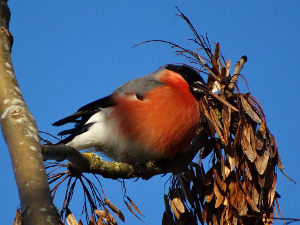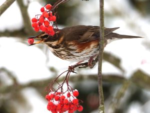 (Photo: S. Fiedler)Mit 7 Eichelhähern bei Wurzbach sah I. Hermann am 8.12. die monatliche Höchstzahl. Etwa 50 Rabenkrähen notierte derselbe Beobachter am 10.12. bei Wurzbach. Am 16.12. sah M. Kohl einen Trupp mit mehr als 70 Ind. bei Remptendorf. M. Schulze meldete am 28.12. die Beobachtung eines größeren Trupps Meisen mit etwa 30 Kohl- und 15 Blaumeisen in Liebschütz. 2 Schwanzmeisen stellte K. Horn am 2.12. in Schönbrunn fest. 12 Ind. wurden am 11.12. für Bad Lobenstein bei ornitho.de angegeben. 8 Schwanzmeisen sahen K. u. M. Ostermann am 13.12. bei Remptendorf. 2 Ind. waren am 28.12. bei Isabellengrün auf Nahrungssuche (M. Ostermann). An der Sperrmauer der Bleilochtalsperre konnte R. Walther am 6.12. einen Zilpzalp bei der Nahrungssuche beobachten. Derselbe Beobachter sah am 19.12. und 22.12. einen weiteren Zilpzalp in seinem Garten in Remptendorf. 24 Stare zählte K. Horn am 2.12. in Karolinenfield. Weitere Nachweise mit 1 bis 8 Ind. gab es in Friesau (K. Spindler), in Liebschütz (M. Schulze), Remptendorf (K. u. M. Ostermann; R. Walther), in Schönbrunn (K. u. R. Friedrich; K. Horn; S. Kästner). 12 Stare notierte M. Schulze am 20.12. in Liebschütz. Den mit 50 Ind. größten Trupp sah S. Fiedler am 23.12. bei Blankenberg. 25 Stare waren am 25.12. kurzzeitig an einer Fütterung in Lückenmühle zu sehen (K. Däumler). Die letzte Beobachtung machte M. Schulze am 27.12. mit 1 Star in Liebschütz. Am Ortsrand von Blankenberg zählte S. Fiedler am 18.12. 17 Amseln. Auf 400 Ind. schätzten K. u. R. Friedrich einen Flug Wacholderdrosseln am 2.12. bei Schönbrunn. Bei Sachsenvorwerk suchten am 6.12. etwa 200 Ind. Nahrung in Ebereschen (I. u. J. Schmidt). Ca. 350 Wacholderdrosseln wurden am 7.12. bei Remptendorf gesehen. Etwa 500 Ind. waren am 8.12. bei Wurzbach auf Nahrungssuche (I. Hermann). Von der Singdrossel gibt es nur vereinzelte Winternachweise. 1 Ind. sah S. Fiedler am 3.12. bei Blankenberg. I. Hermann konnte am 13.12. bei Schneelage und nach strengem Frost 1 Ind. in Wurzbach fotografieren. Fünf Rotdrosseln sah S. Fiedler am 3.12. bei Blankenberg. Eine Rotdrossel zeigte sich am 7.12. bei Wurzbach (I. Hermann). Einen Trupp mit 42 Haussperlingen zählte V. Vopel am 22.12. in Oettersdorf. Mind. 50 Ind. waren es am 30.12. im Gewerbegebiet „Goldbach“ in Bad Lobenstein (I. Hermann). 14 Gimpel wurden am 10.12. in Wurzbach gesehen. Am 23.12. hatte sich deren Zahl auf 16 erhöht (beide I. Hermann). Angaben zum Fichtenkreuzschnabel liegen vor allem aus den angrenzenden Gebieten vor. Für unser Gebiet ist der Nachweis von 9 Ind. bei Burgk am 30.12. erwähnenswert (S. Kästner). Bergfinken wurden in geringer Anzahl an verschiedenen Fütterungen notiert (K. Horn; T. Dietzel; K. u. M. Ostermann; K. Spindler). Die letzte Beobachtung datiert auf den 29.12. (I. Hermann). Bis zu 80 Stieglitze hielten sich wie in den Vormonaten noch am ehemaligen Blühstreifen bei Schönbrunn und in den angrenzenden Gärten auf (S. Kästner). Auf mind. 100 Ind. schätzte I. Hermann einen Trupp Erlenzeisige am 7.12. bei Wurzbach. Zwei Trupps mit zusammen etwa 85 Ind. zählte S. Kästner am 26.12. im Ebersdorfer Park. Den mit ca. 300 Ind. größten Erlenzeisig-Schwarm sahen I. u. J. Schmidt am 28.12. bei Dobareuth. 23 Bluthänflinge waren am 7.12. am Ufer Bleilochtalsperre bei Kloster auf Nahrungssuche. Kaum 200 m voneinander entfernt waren ca. 60 und ca. 40 Goldammern bei Remptendorf auf Nahrungssuche. Etwa 70 Ind. waren es am 9.12. (R. Walther), am 13.12. (K. u. M. Ostermann)und am 21.12. (R. Walther) ebenda. M. Kohl fand an dieser Stelle am 17.12. etwa 60 Goldammern. Die Schneeammer als seltener Gast wurde bisher sechsmal im Beobachtungsgebiet nachgewiesen. Den siebenten Nachweis brachte T. Dietzel am 12.12. mit der Beobachtung von 1,0 Ind. an einer Fütterung am Ortsrand von Remptendorf.