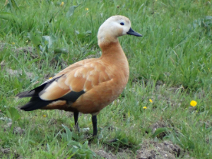 (Photo: I. Hermann)Früher als im Mittel der letzten Jahre erschienen erste Rotdrosseln. Drei Ind. überflogen am 24.9. den Zählpunkt bei Remptendorf. Ein letzter Trauerschnäpper-Nachweis datiert auf den 5.9. in Remptendorf. Einen Grauschnäpper konnten I. Hermann am 13.9. bei Wurzbach, R. Walther am 17.9. in Remptendorf und erneut I. Hermann am 21.9. dokumentieren. Nachdem I. Hermann bereits am 13.8.2020 bei Wurzbach ein Blaukehlchen nachgewiesen hatte, gelang ihm heuer am 7.9. an gleicher Stelle eine erneute Beobachtung dieses seltenen Durchzüglers. Je 4 Braunkehlchen wurden am 4.9. und am 15.9. bei Wurzbach gesehen (I. Hermann). Zwei Schwarzkehlchen notierte R. Müller am 3.9. im Langwassergrund bei Neundorf. Ebenfalls 2 Ind. wurden am 23.9. am Zählpunkt bei Remptendorf erfasst. Wiederum 2 Ind. konnte S. Fiedler am 24. und 25.9. im Krämerfeld bei Frössen feststellen. Der letzte Nachweis eines Schwarzkehlchens gelang I. u. J. Schmidt am 26.9. bei Dobareuth. Der Durchzug des Steinschmätzers erreicht in unserem Gebiet seinen Höhepunkt im September. Ein erster Vogel wurde am 6.9. bei Remptendorf gesehen. Weitere folgten am 12.9.,15.9. und 29.9. ebenda. Späte Gartenrotschwänze sahen I. Hermann am 21.9. bei Oberlemnitz sowie M. Ostermann und R. Walther am 25.9. bei Remptendorf. Eine letzte Beobachtung meldete wiederum I. Hermann für den 26.9. mit 3 Ind. bei Wurzbach. Der Brachpieper ist in unserem Gebiet seltener Durchzügler. Am 4.9. überflogen 2 Ind., am 5.9. 1 Ind. den Zählpunkt bei Remptendorf. Ein weiterer Brachpieper rastete am 27.9. mit Wiesenpiepern bei Zoppoten. Früher als in den Vorjahren erreichte am 9.9. der erste Wiesenpieper unser Gebiet, und konnte in der zweiten Monatshälfte an allen Beobachtungstagen erfasst werden (R. Walther, z. T. mit U. Haußner, P. Hirth, M. Ostermann). Maximal waren es 45 Ind. am 27.9. bei Zoppoten. 57 Bachstelzen zählte I. Hermann am 26.9. auf einem Feld bei Wurzbach. Etwa 75 Ind. waren am 28.9. auf einem Feld bei Zoppoten hinter dem Pflug auf Nahrungssuche. An der Saale bei Blankenberg notierte I. Hermann am 11.9. 6 Gebirgsstelzen. Ziehende oder rastende Wiesenschafstelzen wurden erstmals am 9.9. (4 Ind.) und an weiteren zehn Beobachtungstagen bei max. 17 Ind. am 28.9. gesehen (R. Walther; M. Ostermann). In einem Blühstreifen bei Liebschütz zählte M. Schulze am 13.9. ca. 60 Stieglitze. 52 Ind. waren es am 19.9. in einem Blühstreifen bei Gefell (I. u. J. Schmidt). Etwa 200 Buchfinken wurden am 12.9. an einem Wald-/Feldrand bei Remptendorf erfasst. Unweit davon konnten am 17.9. 290 Ind. rastend und ziehend gezählt werden. Stärkerer Zug setzte ab dem 24.9. ein. Am Morgen des 28.9. wurden innerhalb 100 Minuten 4392 Ind. gezählt. Der erste durchziehende Bergfink wurde am 22.9. erfasst. Größere Trupps der Goldammer notierte I. Hermann am 10.9. mit 30 Ind. bei Wurzbach und am 16.9. mit 79 Ind. bei Oberlemnitz. Als seltener Gast wurde ein Ortolan am 24.9. während der Punktzählung bei Remptendorf festgestellt.